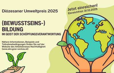 im Geist der SchöpfungsverantwortungMachen Sie mit beim Diözesanen Umweltpreis 2025 der Diözese Graz-Seckau!