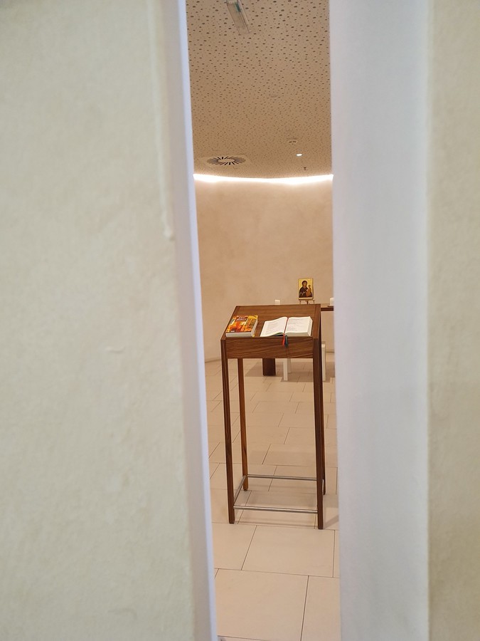 Vor der Heimfahrt konnten wir uns für einige Minuten im Raum der Stille von der Atmosphäre und der Wirkung dieses Raumes überzeugen. Falls Sie in Wien am Hauptbahnhof sind, gönnen Sie sich Zeit zum Innehalten, zur Andacht, zum Gebet ...