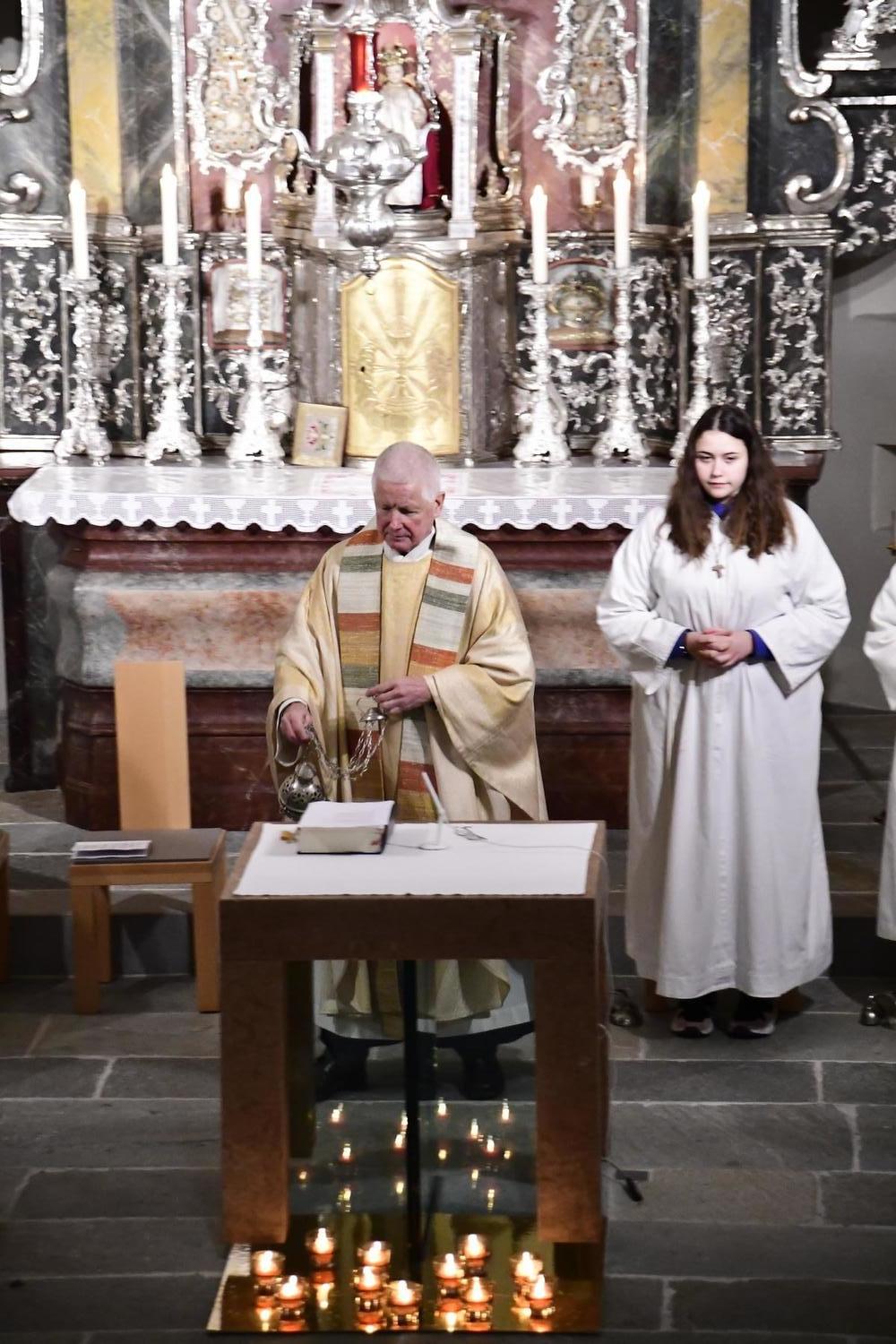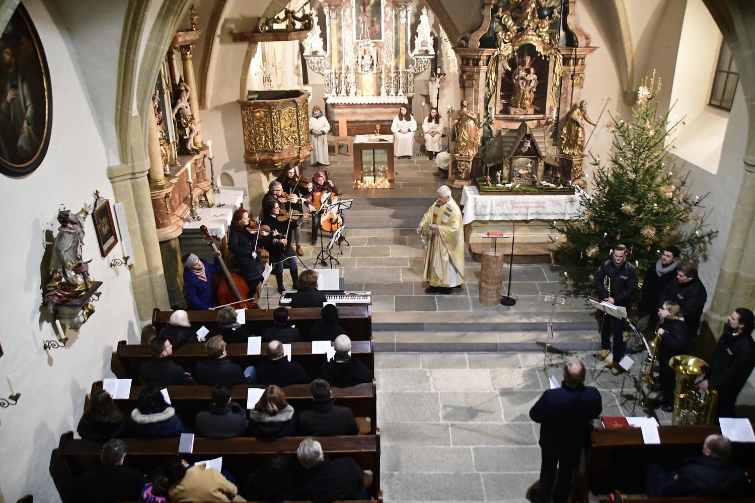 Am 24. Dezember wurde auf dem Kirchberg in Deutschfeistritz um 23.00 Uhr die Christmette gefeiert. Professor Mag. Helmut Schlacher als Zelebrant freute sich über die große Zahl an Kirchenbesuchern. Familie Härtel sang schon eine halbe Stunde vor Beginn des Gottesdienstes mit der ganzen Kirchengemeinde Hirten- und Krippenlieder. Inge Härtel übte für den Festgottesdienst ein vielstimmiges Gloria und ein Alleluja ein, an dem sich alle mit Freude beteiligten. Auch das Orchester und die Bläsergruppe musizierten mit großer Begeisterung. Die mit Sorgfalt ausgewählten Texte trugen zu einer besonderen Stimmung bei. So wurde die Mette sowohl musikalisch als auch spirituell zu einem Gemeinschaftserlebnis.