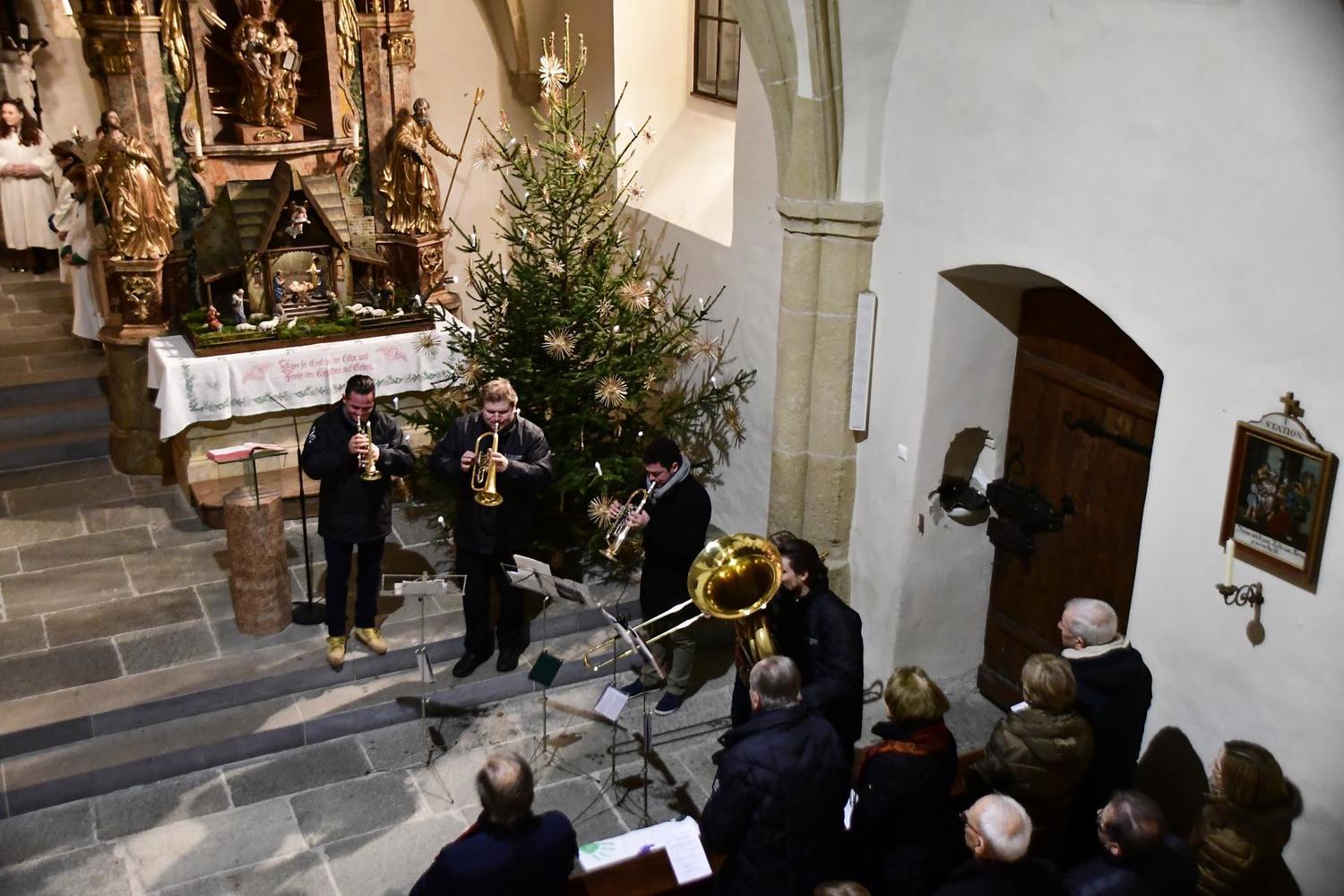 Schon der Weg auf den Kirchberg war besonders stimmungsvoll. Von Weitem hörte man die Weihnachtslieder der Bläsergruppe und sah die Lichter der Fackeln und Laternen von Mettenbesuchern.