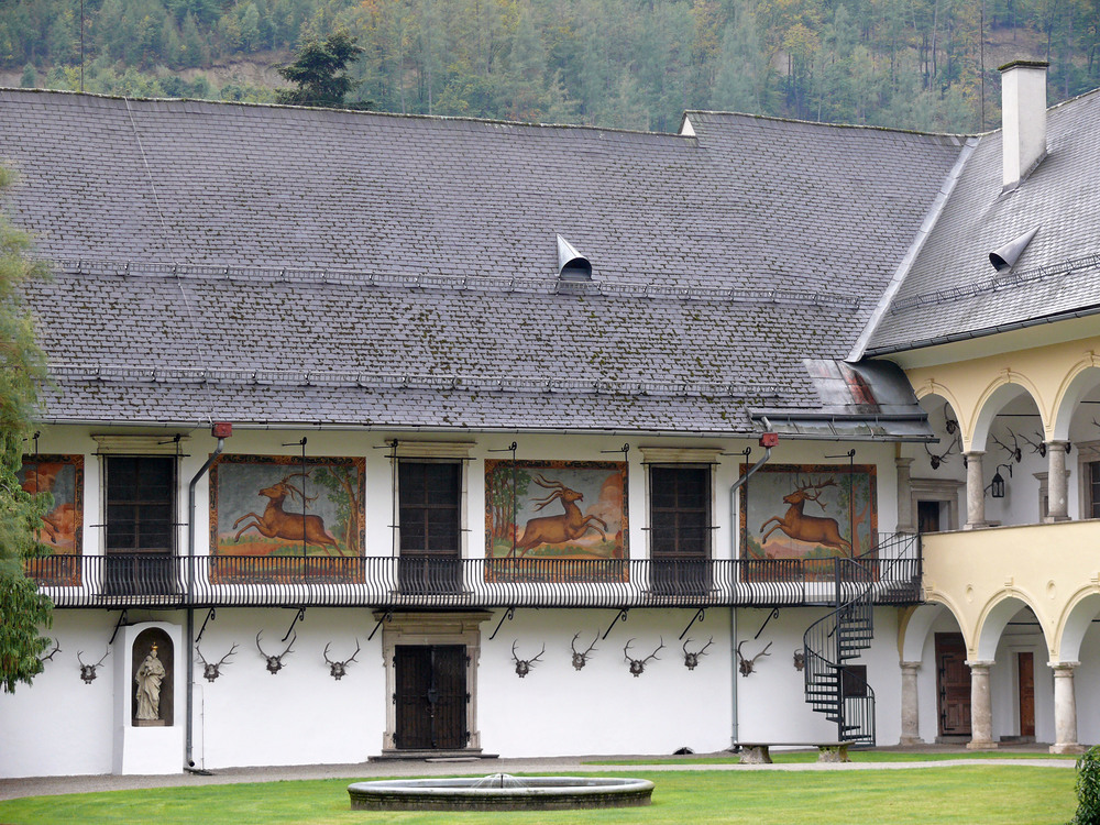 Schlosskirche WaldsteinJohann Seyfried von Eggenberg ließ die Kirche zwischen 1667 und 1713 als Südflügel des Schlosses Waldstein erbauen.  Im 18. Jh. erhielt die Kirche unter den neuen Besitzern, den Grafen von Dietrichstein,  eine reiche Innenausstattung im spätbarocken Stil.