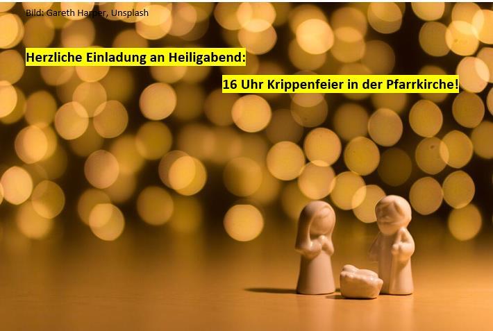 Herzliche Einladung an Heiligabend: 16 Uhr Krippenfeier in der Pfarrkirche!