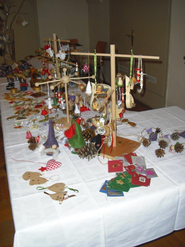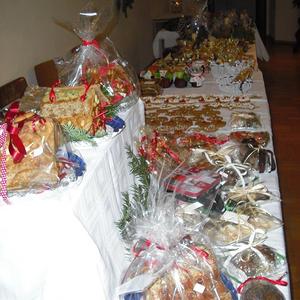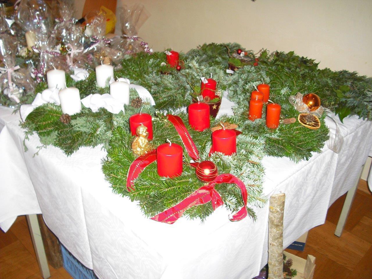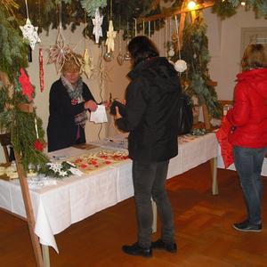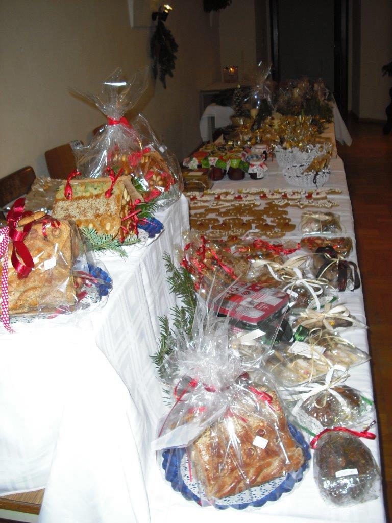 Zum Verkauf werden unter anderem Adventkränze, Adventgestecke, Weihnachtsbilletts, Basteleien, Lebkuchen, Lebkuchenhäuser, Mehlspeisen, hausgemachte Kekse, Krippen, Sterne, Tischdecken, Schürzen, Socken und Hausschuhe angeboten.