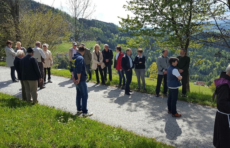 Bei schönem Wetter und toller Aussicht auf Frohnleiten wanderten zahlreiche Personen mit. Pater Simon gestaltete diese Feldersegnung mit Unterstützung der Dirnbergbauern.