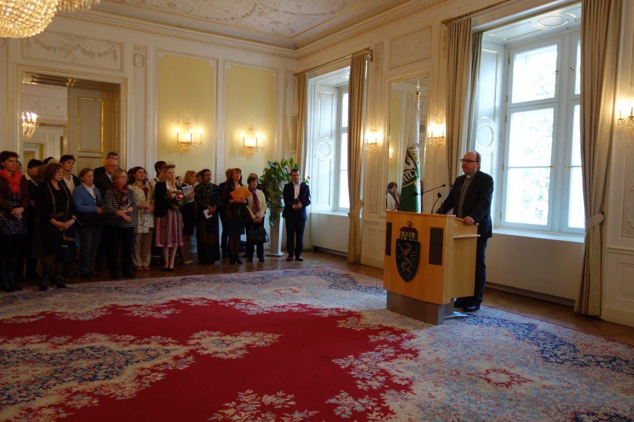 Ansprachen hielten in Vertretung des Bischofs, Bischofsvikar Hermann Glettler, und die Vorsitzende der kfb, Lydia Lieskonig. Für die musikalische Umrahmung sorgte der Chor der BG/BRG/BM Dreihackengasse.