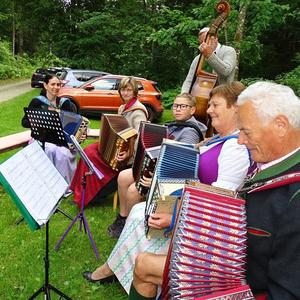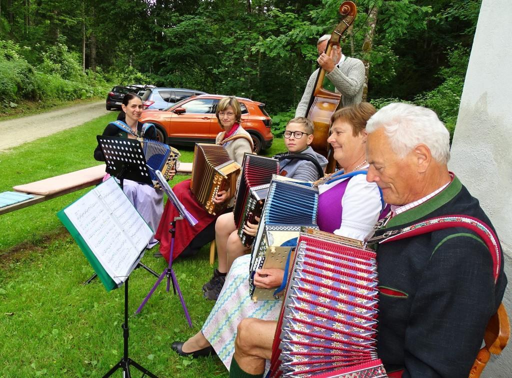Nach der Messe, die musikalisch von der "Bradlmusi Parz" mitgestaltet wurde, gab es ein wirklich gemütliches Beisammensein bei besten Bratwürsten und ausgezeichneten Mehlspeisen. Die Musikanten unterhielten die Gäste mit einigen Einlagen, die Kinder spielten im Wasser der Pölla.