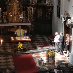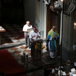 Tragischerweise wurde der Feiertag vom plötzlichen Tod unseres langjährigen Organisten und Chorsängers Franz Grasmugg überschattet. So erhielt das abschließende Segenslied, das eigentlich als Gruß und Dank des Chors an unseren scheidenden Pfarrer Pater Simon gedacht war, eine besonders tröstliche Bedeutung. Das für das 800-Jahr-Jubiläum der Diözese Graz-Seckau komponierte Stück verwendet im Refrain einen Text von Edith Stein: „Ohne Vorbehalt und ohne Sorgen leg´ ich alle Zeit in deine Hand“.