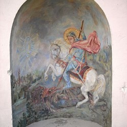 Um den heiligen Georg, der im 3. Jahrhundert lebte, ranken sich viele Legenden. Besondere Berühmtheit erlangte die Legende vom Kampf des Ritters Georg mit dem Drachen, der in einem See im heutigen Libyen hauste und eine Stadt mit seinem Gifthauch verpestete. Georg versprach, den Drachen zu töten, wenn sich die Leute dort zu Christen bekehren würden. Als der Drache auftauchte, schwang er mit dem Zeichen des Kreuzes die Lanze und durchbohrte das Untier. Daraufhin ließ sich der König mit seinem ganzen Volk taufen. Der heilige Georg, der zu den 14 Nothelfern gehört und den man anruft, wenn unter den Tieren eine Seuche grassiert, ist der Patron der Bauern, der Pferde und des Viehs, für gutes Wetter und auch der Schutzpatron des ganzen englischen Königreichs. Sein Gedenktag wird am 23. April gefeiert. In Adriach gibt es an diesem Tag jährlich eine Abendmesse sowie am Sonntag danach, dem Georgi-Sonntag, eine heilige Messe zu Ehren des Patrons.