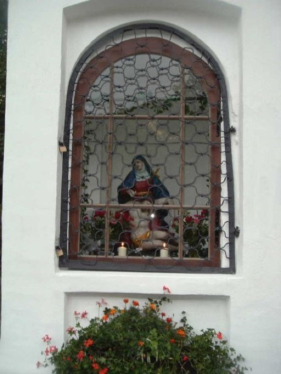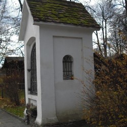 Eines der wohl ältesten Wegkreuze unseres Gemeindegebietes ist das Mariazeller-Kreuz neben dem Postamt und dem Rintpark. Es gibt leider keine Aufzeichnungen über das Erbauungsjahr und den seinerzeitigen Grund für die Errichtung. Das Mariazeller-Kreuz hieß einst St.-Oswald-Kreuz und endstand mit Sicherheit lange vor 1605, denn da wird erstmals urkundlich erwähnt, dass der Magistrat - dieser muss zur damaligen Zeit der Besitzer gewesen sein - das "St.-Oswald-Kreuz vor dem Bruckertor" renovieren ließ. Nach der Gründung des Servitenklosters soll das Wegkreuz der Schmerzensmutter geweiht und 1799 renoviert worden sein. Laut den Aufzeichnungen in der Chronik unseres Ortes ließ die Witwe des Fleischhackers Martin Schweinegger das Kreuz 1840 renovieren. Ob das Wegkreuz auch im Besitz der Familie Schweinegger war, ist leider nicht mehr eruierbar. Ab diesem Zeitpunkt hieß es Schweinegger-Kreuz. Seit wann das Wegkreuz “Mariazeller-Kreuz” heißt, ist leider nicht bekannt. Sicher ist nur, dass bei diesem Kreuz lange Zeit der Sammelpunkt für die Fußwallfahrt nach Mariazell war. Man ging früher nicht übers Gebirge, sondern den Flüssen im Tal entlang. Nach mündlicher Überlieferung wurde dies bis zum 1. Weltkrieg so gehandhabt. Interessant ist auch die Tatsache, dass früher die Verstorbenen aus dem Umland zum Mariazeller-Kreuz gebracht wurden, wo dann die Totenbeschau stattfand. Im Anschluss geleitete der Priester den Verstorbenen an der Kirche vorbei zum Friedhof. Erst nach der Beerdigung wurde die heilige Messe gefeiert.