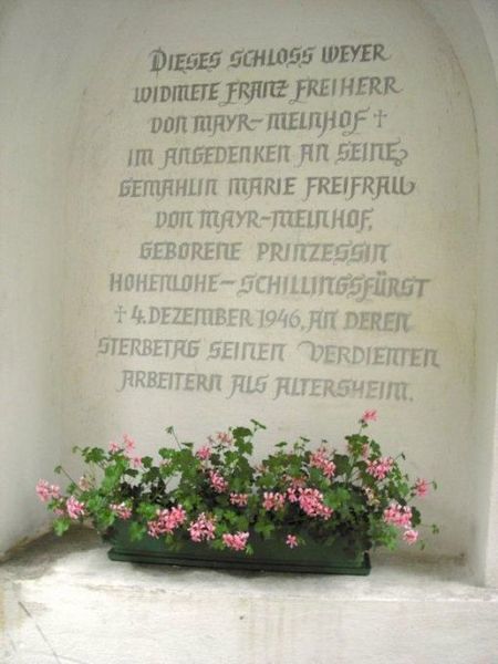 Das Schloss Weyer wurde im 13. Jh. von den Pfannberger Grafen als Schutzanlage auf dem seinerzeitigen "Diebsweg" zwischen Frohnleiten und Leoben-Göß erbaut. In der Folge befand es sich im Eigentum verschiedener Adelsgeschlechter und erlebte eine sehr wechselvolle Geschichte. Seine gegenwärtige Gestalt dürfte das Schloss, eine "Wasserburg", etwa im 16. Jh. erhalten haben. Vom ursprünglichen Wassergraben sind noch heute Teile zu sehen. Als das Schloss während des Ersten Weltkriegs als Reservespital für Kriegsverwundete diente, erteilte 1914 das "fürstbischöfliche Seckauer Ordinariat zu Graz" die Messlizenz, die galt, solange das Schloss als Spital verwendet wurde. 1919 wurde diese Messlizenz um 7 Jahre verlängert und 1964 noch einmal um 10 Jahre. Da die Kapelle bereits 1750 für öffentlich erklärt worden war, hatte sie durch die Errichtung eines öffentlichen Kindergartens unter der Leitung von Klosterschwestern den Charakter einer kirchlichen Anstaltskapelle. Die Schlosskapelle ist der heiligen Lucia von Syrakus geweiht. Nach der Legende wurde die sizilianische Märtyrerin, die schon als Kind ewige Jungfräulichkeit gelobte, von ihrem heidnischen Verlobten als Christin angeklagt und unter Diokletian 310 n. Chr. hingerichtet. Sie ist die Patronin für Augenleiden und ihr Gedenktag wird am 13. Dezember gefeiert. Am 17. September 2004 zelebrierte Bischof Dr. Egon Kapellari mit P. Simon in Anwesenheit von Franz Mayr-Melnhof, des Goess-Saurau und der „Pfarrlegende“ Berta Edler (+ 2010) eine Messe. |