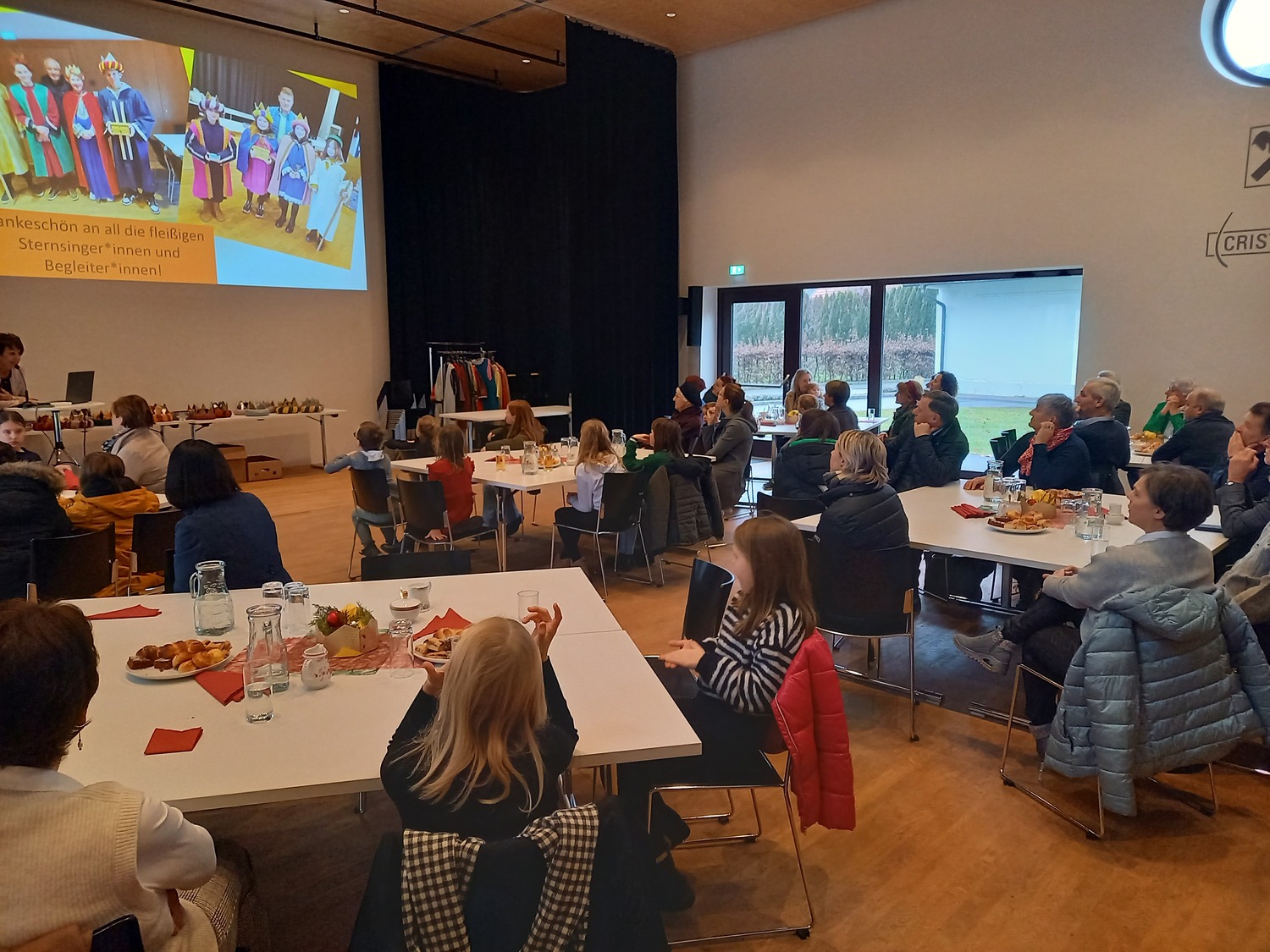 Ohne die vielen freiwilligen Helfer/innen, wäre das Sternsingen in Gamlitz nicht möglich und genau diese Menschen wurden heute zum Dank für Ihre Mitarbeit und Unterstützung zu Kuchen und Kaffee in den Pfarrsaal geladen. Mit einer Fotopräsentation bedankte sich Frau Moser nochmals herzlich bei allen Gästen für Ihren Einsatz.