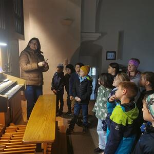 Die Volksschulkinder entdecken die Orgel in der Kirche