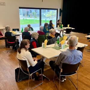 Das Seniorenteam brachte diesmal mit liebevoll dekorierten Butterbroten den Frühling auf den Tisch und die Wunschzettel, die auf den gedeckten Plätzen an den Tischen für die Gäste bereitlagen, waren wieder ein herzlich schönes Geschenk für alle.