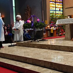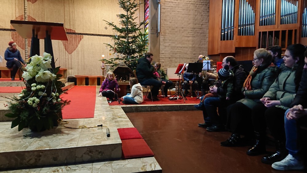 Tina Fegerl hat mit den Kindern in vielen Proben wieder ein tolles Krippenspiel einstudiert und eine besinnliche Andacht vorbereitet. Musikalisch begleitet wurde es von eine Bläsergruppe von klein bis groß.