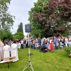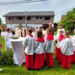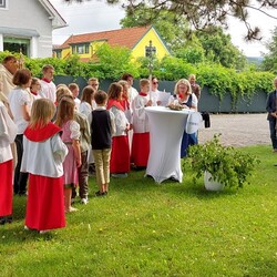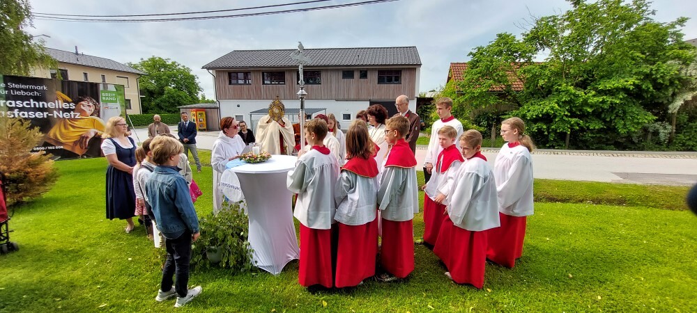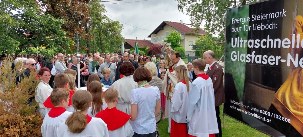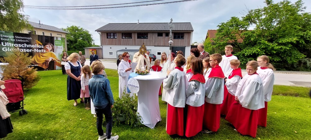 Gemeinsam mit der Pfarre Tobelbad feierten wir das Fronleichnamsfest beim Dorfkreuz in Lieboch. Der auferstandene Herr Jesus, der in der Gestalt des Brotes gegenwärtig ist, steht im Mittelpunkt.