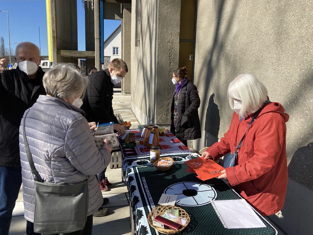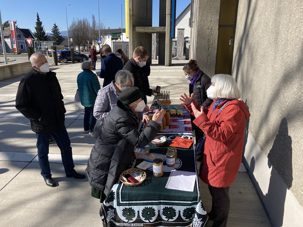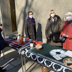 Danach fand im Rahmen des Familienfasttages der Suppensonntag heuer im Freien mit einem Verkaufsstand von "Suppe zum Mitnehmen" statt. Innerhalb kürzester Zeit waren die köstlichen Suppen ausverkauft. Über Euro 700 kamen an Spenden herein, die für die Partnerinnen in Kenia zur Unterstützung junger Mädchen verwendet werden. Die engagierten Frauen der Weltgruppe gestalteten auch den Gottesdienst mit. Ein herzliches Danke allen Beteiligten!