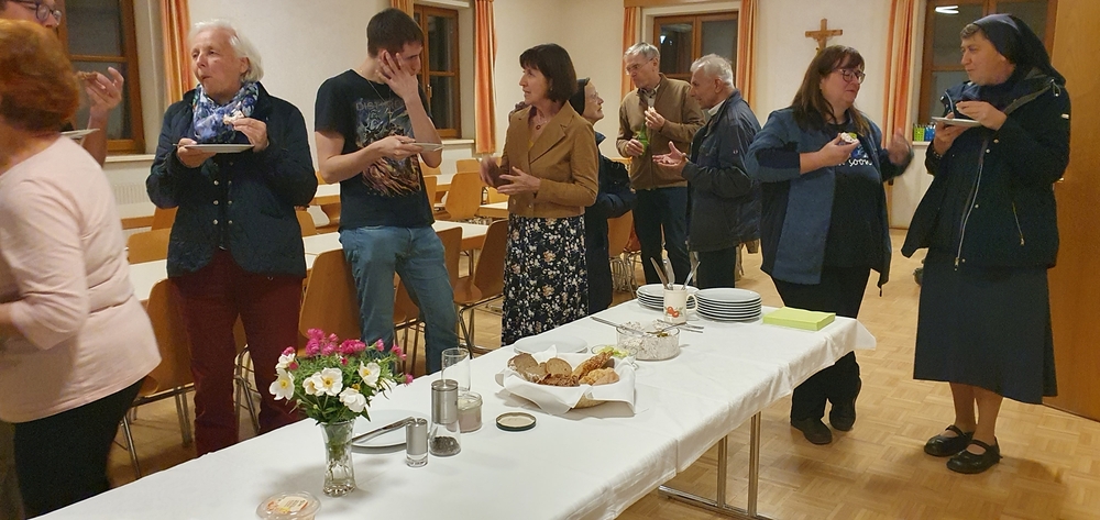 Zum anschließenden Pfarrkaffee lud der Kirchenchor herzlich ein und freute sich über viele Gäste, die das Zusammensitzen bei Kuchen und Kaffee/Tee in netter Gemeinschaft - auch mit Diakon Johannes und seiner Familie - sehr genossen. Ein netter Ausklang eines besonderen Vormittags!