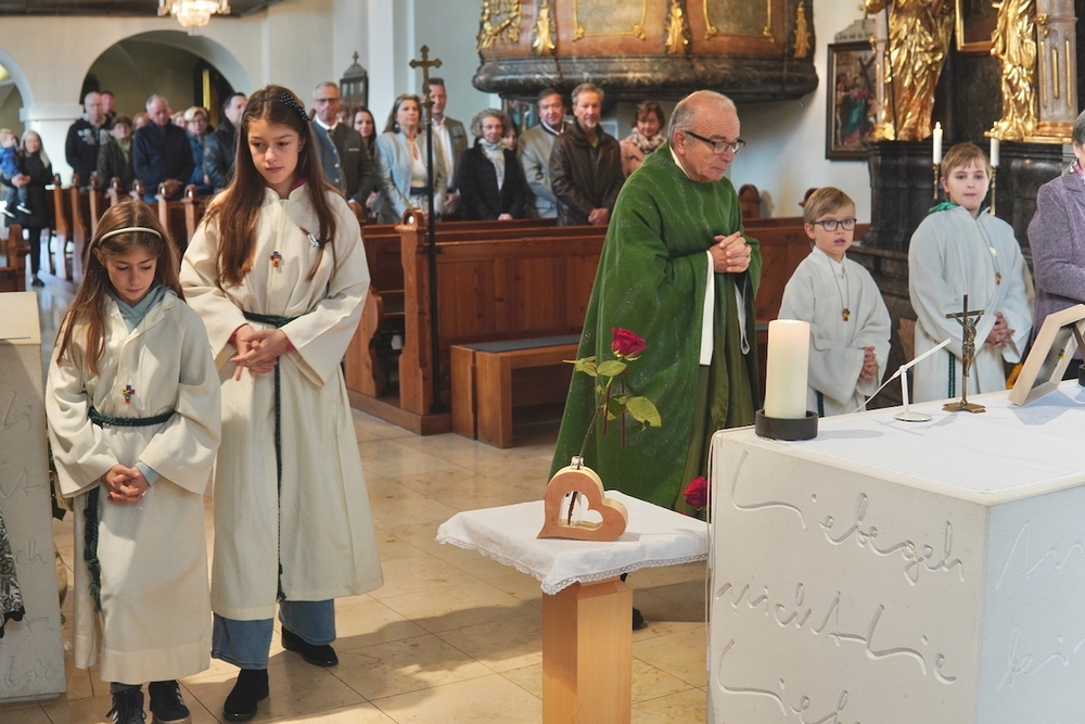 Voll Dankbarkeit und Freude feierten wir das diesjährige Erntedankfest in unserer mit großen und kleinen Leuten gut gefüllten Kirche. Vikar Norbert Glaser zelebrierte die heilige Messe, assistiert von Diakon Michi Zepf und sieben tüchtigen Minis.