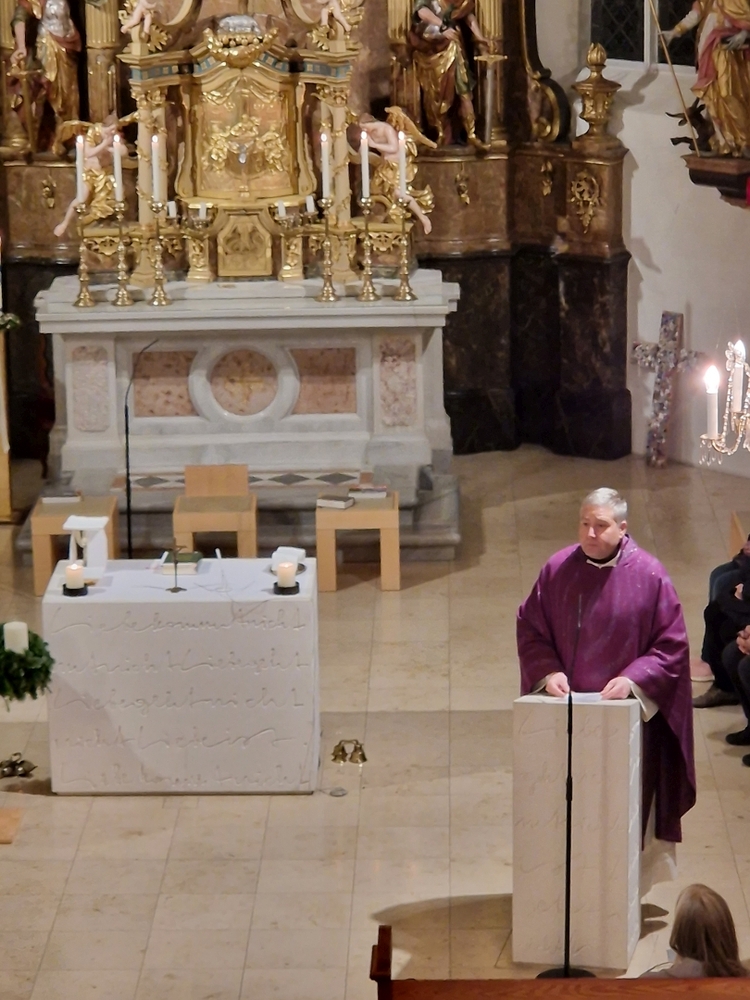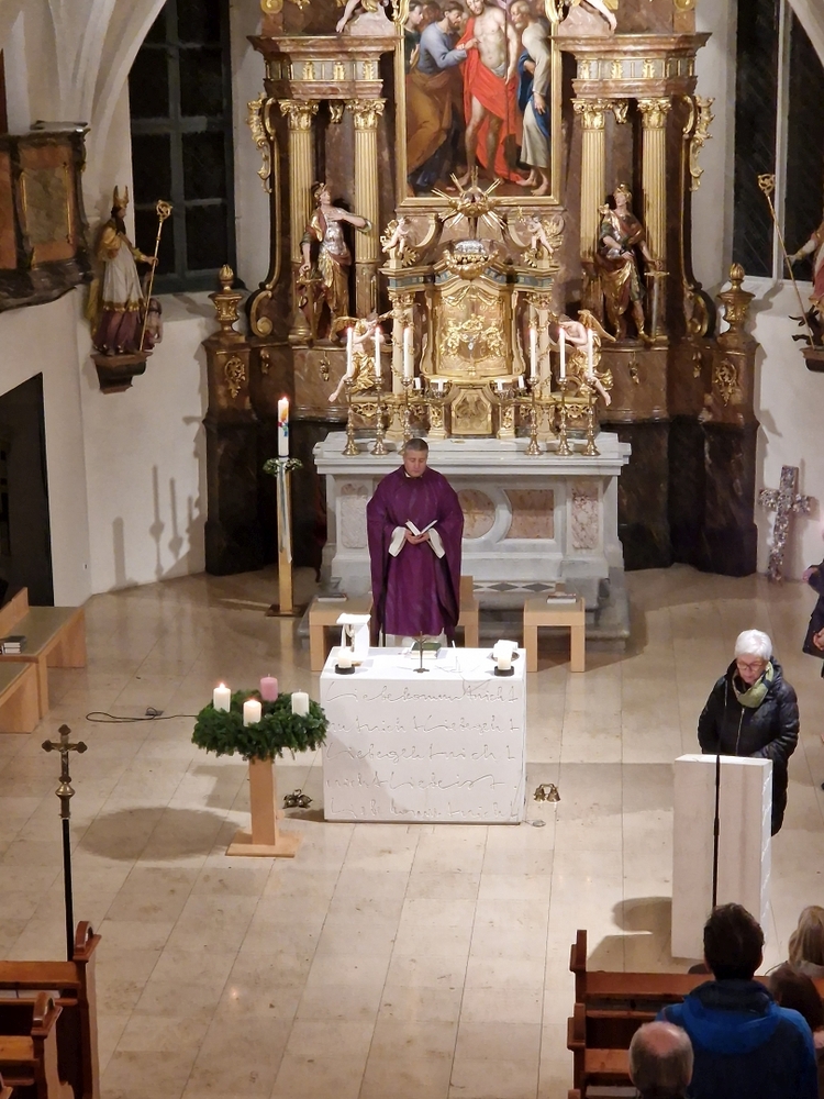 Gedanklich führte uns Vikar Norbert auf die Spur, was der Vers „Seid also wachsam!“ aus dem Evangelium (Mt 24, 42) für uns heute heißen kann - und wie die Vision des Jesaja, dass Schwerter zu Pflugscharen und Lanzen zu Winzermessern umgeschmiedet werden (Jes 2, 4), in unserer Welt ein Stück weit Wirklichkeit werden könnte. Es kann nur gelingen, wenn „Menschen ihr Lebensnavi in Jesus verankern“, so Vikar N. Glaser in seiner Predigt.