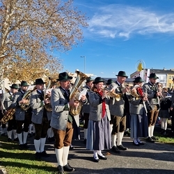 Musikalisch gestaltete eine Abordnung der MUZ von der Empore aus die heilige Messe - und auch danach beim Totengedenken mit Kranzniederlegung vor dem Kriegerdenkmal waren die Musiker*innen zur Stelle.