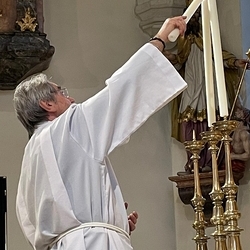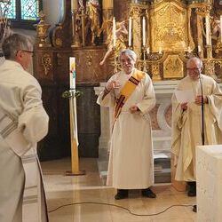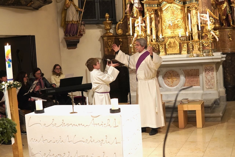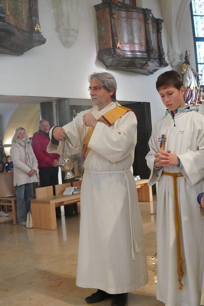 Nach dem feierlichen Einzug betonte Vikar Norbert in der Begrüßung, wie schön es ist, dass Johannes neben vielen anderen ehrenamtlichen Tätigkeiten (Kantor, Organist …) nun auch den Dienst des Diakons ausüben wird.
