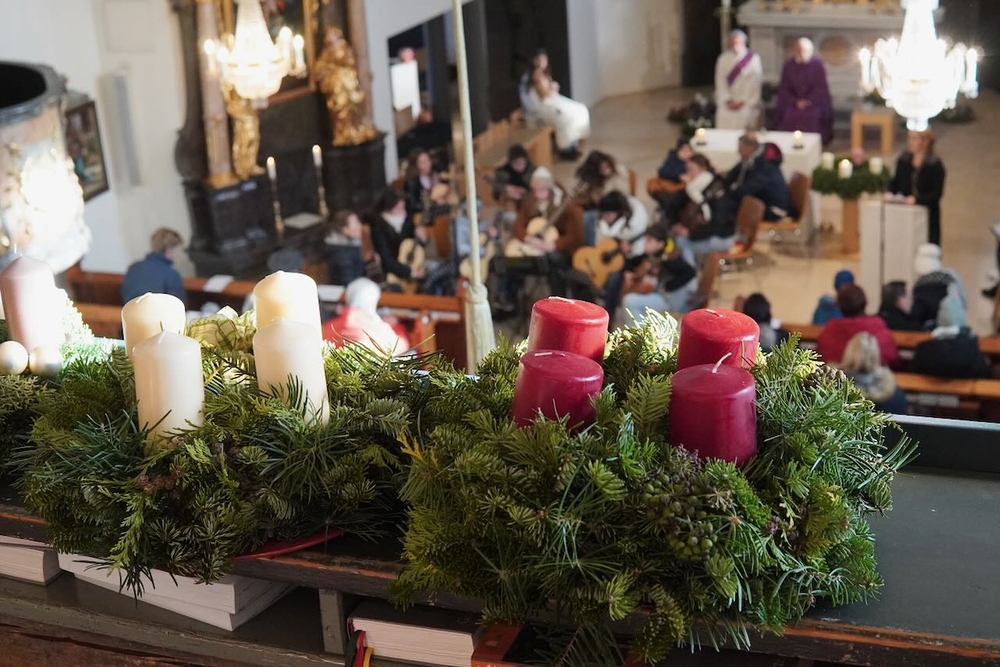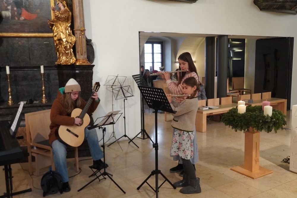 Mit viel Gefühl stimmten die jungen Musikerinnen und Musiker mit ihren Gitarren in die Adventzeit ein und bereicherten mit ihren Stücken die heilige Messe, die Vikar Norbert Glaser, unterstützt von Diakon Michi Zepf, zelebrierte.