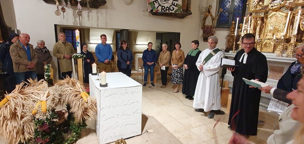 Vor der Erntedankkrone haben wir am Samstag in der Pfarrkirche Premstätten mit der evangelischen und mit der methodistisch-evangelischen Kirche „Gott sei Dank“ gesagt.