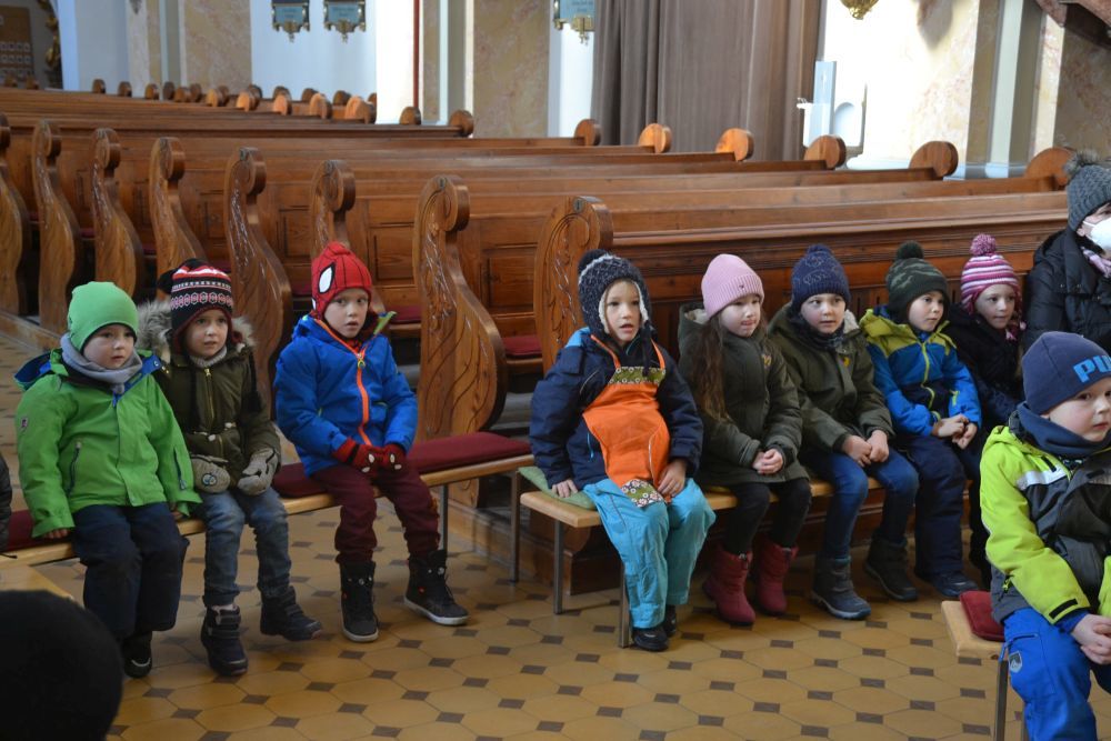 In der Pfarrkirche gestalteten die Kinder mit ihren Pädagoginnen eine Vorweihnachtsfeier. Vikar Gerhard Hatzmann zündete die Kerzen des Adventkranzes an, die Kinder spielten die Herbergssuche, Vikar Gerhard segnete alle zum Abschluß.