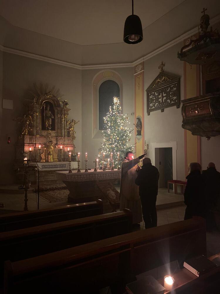 Nach der Heiligen Kommunion wurde die Altenmarkter Krippe das letzte Mal inzensiert, ein Gebet gesprochen und der Blasiussegen gespendet.
