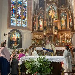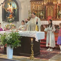 Die Pfarre Landl feierte am Sonntag, 02 06.2024 Fronleichnam. Die "Umabeta" bewiesen Wetterfestigkeit und beteten mit musikalischer Begleitung der Musikkapelle Almrausch von Mooslandl zur Pfarrkirche. Die Fronleichnamsprozession fand unter Begleitung der schön geschmückten Dörfelmoa- Muttergottes, den Blumenmädchen, der Musikkapelle Almrausch, dem Organisten Fritz Buder und der Pfarrgemeinde in der Kirche statt. Im Anschluss warteten am Kirchplatz frische Grillhendl, Getränke und Mehlspeisen auf alle Mitfeiernden. Ein Dankeschön an alle, die zum Gelingen des Festes beigetragen haben.