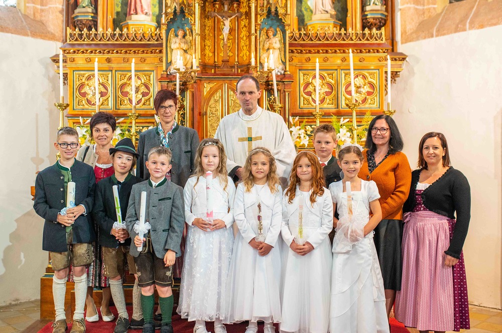 Unter dem Motto „Mit Maria unterwegs zu ihrem Sohn Jesus“ empfingen heuer folgende neun Kinder der VS Landl zum ersten Mal die Heilige Kommunion: